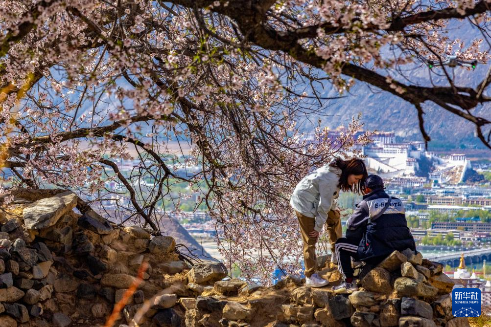 近日,西藏拉薩市城關區(qū)慈覺林社區(qū)的一片古桃樹進入盛花期,因其正對著布達拉宮,成為游人拍照打卡的“網紅”地。