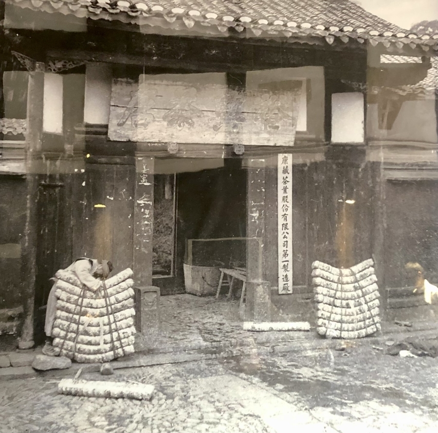 1939年,中國電影教育的開創(chuàng)者之一、時任金陵大學教師的孫明經(jīng)對西康進行了系統(tǒng)的考察,也為姜家大院留下了珍貴的影像資料。他拍攝到當時姜家大院大門口的情景:“裕興茶店”的匾額下,掛著“康藏茶葉股份有限公司第一制造廠”的木牌,大門兩邊各放著一背茶包,均為九條,左邊有一位女背夫,正在打捆茶包,整個茶包預(yù)估有200斤,而在當時,男背夫所要背負的重量要達到300斤左右。