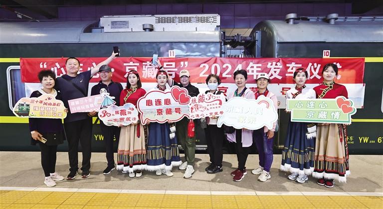 為支持西藏立足特色資源發(fā)展旅游產(chǎn)業(yè),在北京對口支援拉薩30周年之際,5月19日,由文化和旅游部、中國國家鐵路集團(tuán)指導(dǎo),中共拉薩市委員會、拉薩市人民政府、北京援藏指揮部、中國鐵路北京局集團(tuán)有限公司主辦,中共拉薩市城關(guān)區(qū)委員會、拉薩市城關(guān)區(qū)人民政府、中國鐵道旅行社集團(tuán)有限公司承辦的“心連心·京藏號”旅游列車在北京發(fā)車。