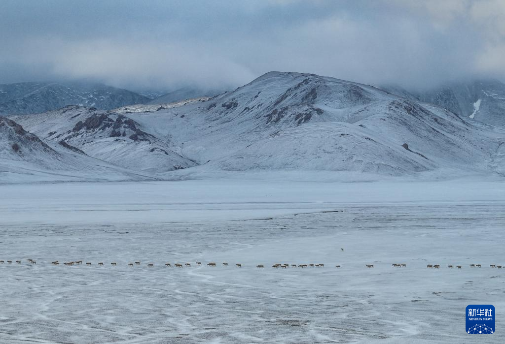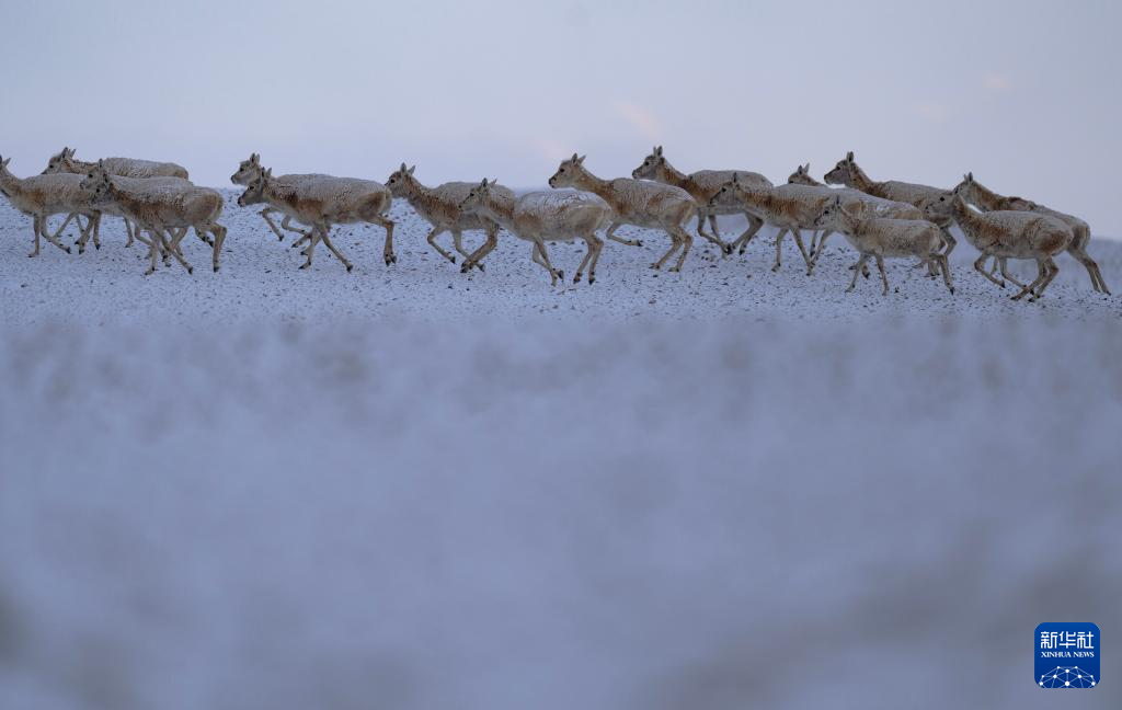 這是雪地中遷徙的藏羚羊(5月8日攝)。新華社記者 丁增尼達 攝