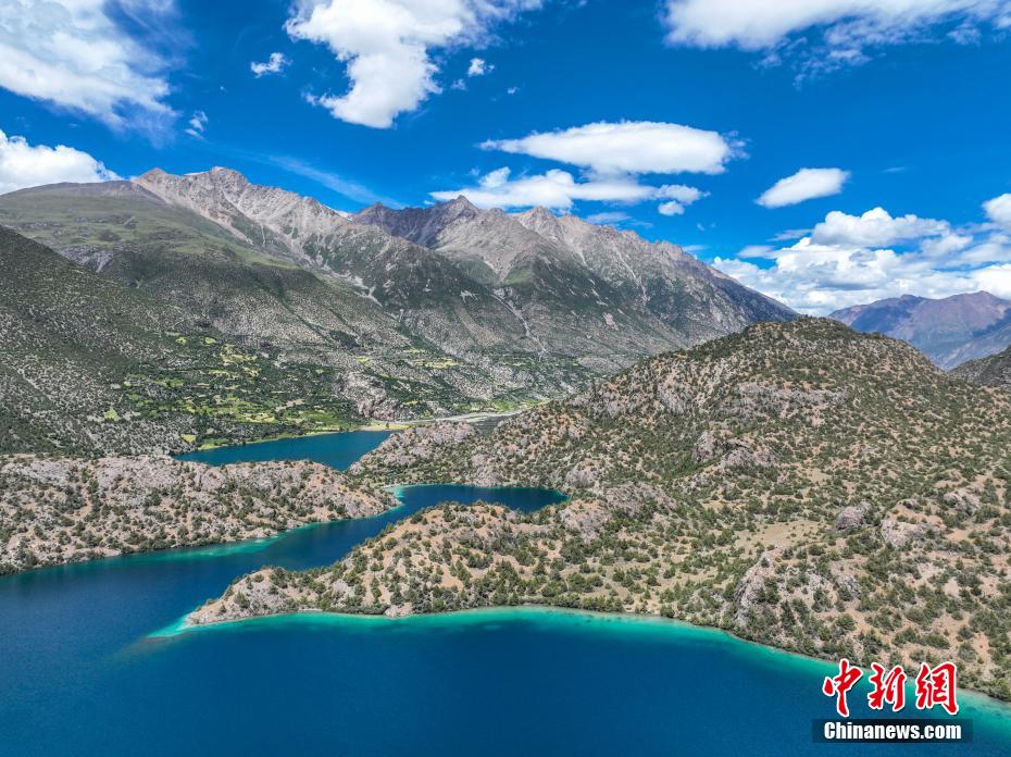 圖為三色湖旁邊的普玉村。(無人機(jī)照片)中新社記者 貢嘎來松 攝