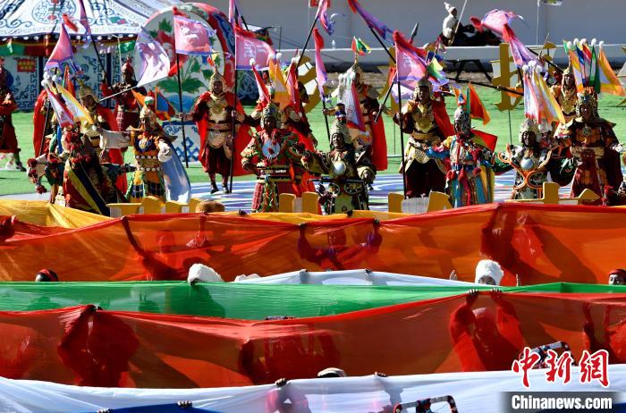 8月10日,2024年那曲恰青賽馬節(jié)暨第三屆“鄉(xiāng)村振興 那曲奮進(jìn)”活動(dòng)開(kāi)幕式在那曲市賽馬場(chǎng)舉行,精彩的文藝歌舞、馬術(shù)表演等展示著羌塘草原上的無(wú)窮魅力和活力。圖為開(kāi)幕式文藝表演現(xiàn)場(chǎng)。中新社記者 李林 攝
