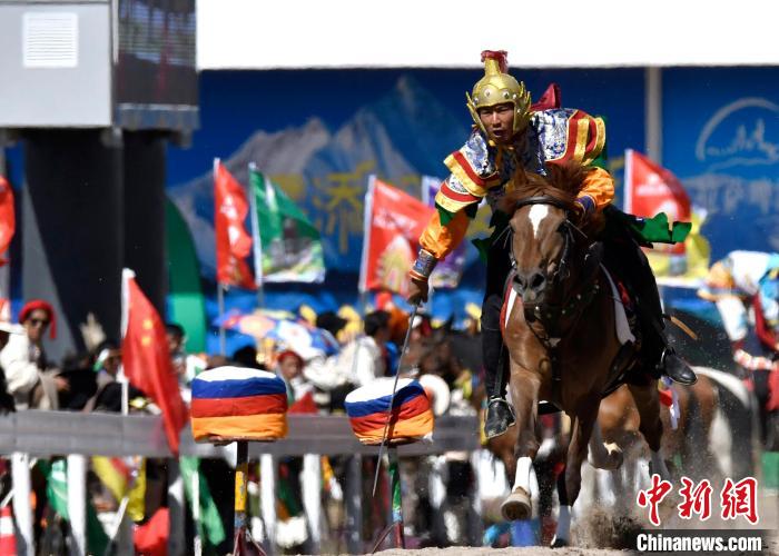 8月10日,2024年那曲恰青賽馬節(jié)暨第三屆“鄉(xiāng)村振興 那曲奮進(jìn)”活動(dòng)開(kāi)幕式在那曲市賽馬場(chǎng)舉行,精彩的文藝歌舞、馬術(shù)表演等展示著羌塘草原上的無(wú)窮魅力和活力。圖為開(kāi)幕式上的馬術(shù)表演。中新社記者 李林 攝
