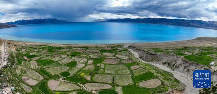 這是一家賓館民宿門前的當(dāng)惹雍錯(cuò)夏季景色。新華社記者 姜帆 攝