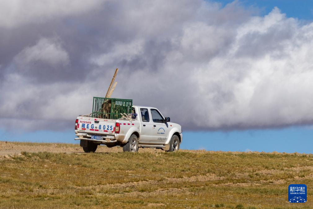 野保隊(duì)員將棕熊運(yùn)送至西藏那曲市尼瑪縣的羌塘國家級自然保護(hù)區(qū)核心區(qū)(8月30日攝)。新華社記者 姜帆 攝 ??