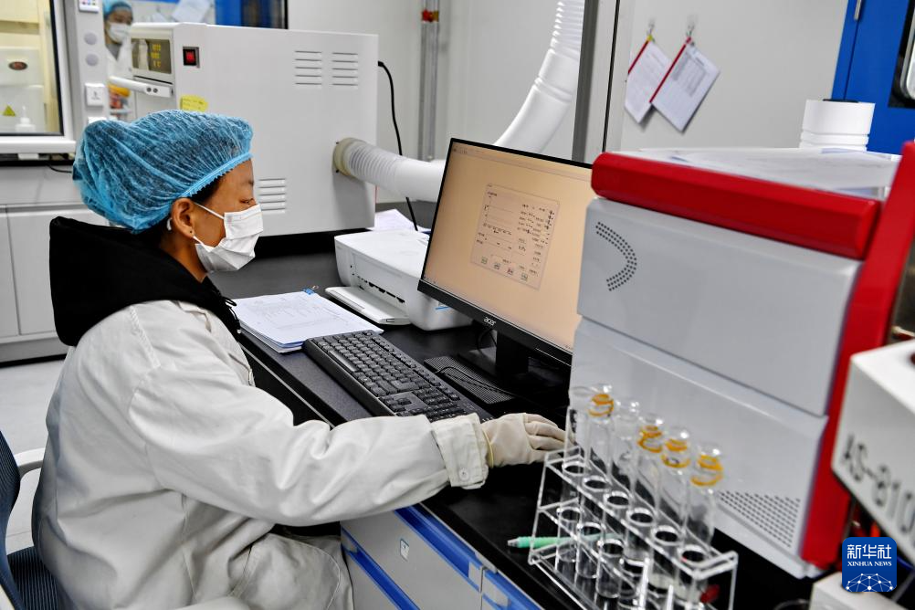 嘎確生態(tài)畜牧業(yè)發(fā)展有限責(zé)任公司檢驗(yàn)人員在對牛奶中的污染物進(jìn)行檢測(8月24日攝)。新華社記者 張汝鋒 攝 ??
