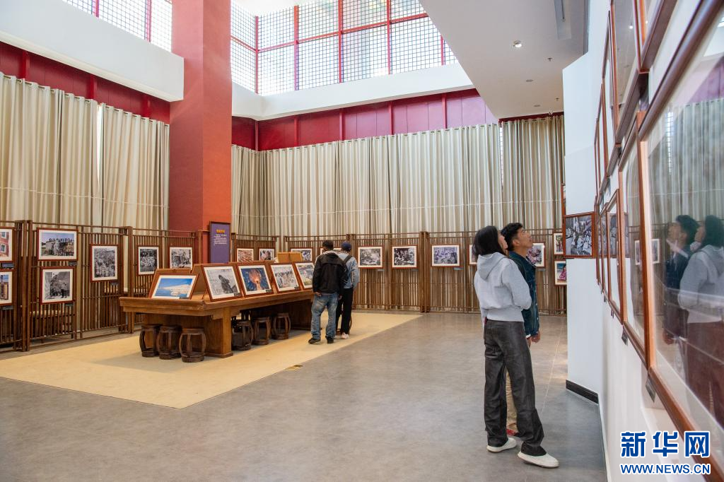 9月30日拍攝林芝美術館參觀“國社之鏡·世紀光影”新華社新聞攝影展林芝分展一角。新華網(wǎng) 旦增努布 攝
