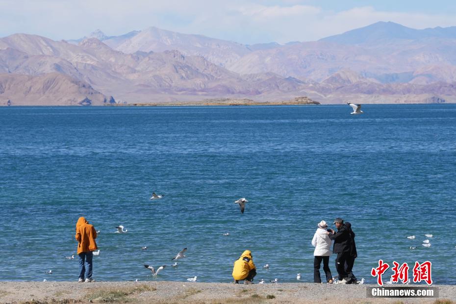 10月4日,游客在班公湖畔游玩。“十一”國(guó)慶假期,西藏日土縣班公湖吸引不少游客觀光游覽。中新社記者 崔楠 攝