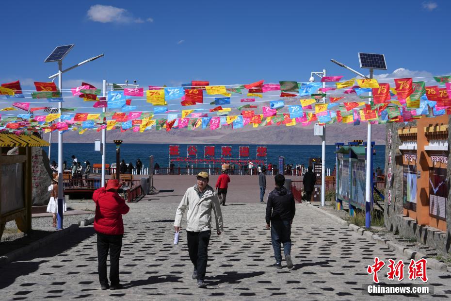 10月4日?!笆弧眹?guó)慶假期,不少游客來到西藏日土縣班公湖游玩。中新社記者 崔楠 攝