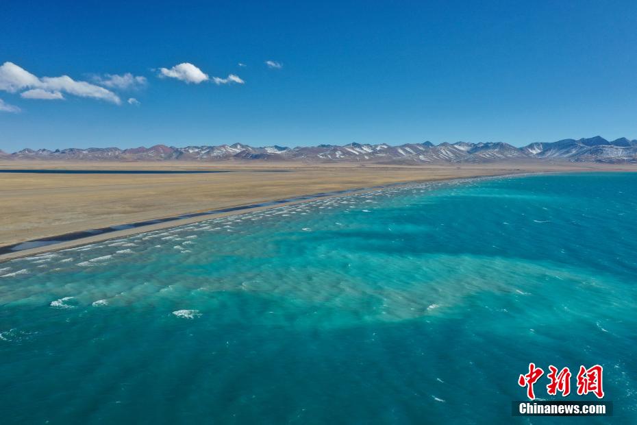 11月16日,西藏拉薩,由中國新聞社主辦的第二屆“瀾湄印象”中外媒體采風活動團隊來到納木錯,感受“天湖”的自然魅力。據(jù)了解,此次采風活動有來自泰國、越南、柬埔寨等瀾湄國家的媒體代表。納木錯位于西藏自治區(qū)中部,拉薩當雄和那曲班戈兩縣之間,是西藏第二大湖泊。初冬的納木錯碧波蕩漾,浪花卷云,不時有紅嘴海鷗掠過水面,景色迷人。圖為納木錯一角。(無人機照片)中新社記者 貢嘎來松 攝