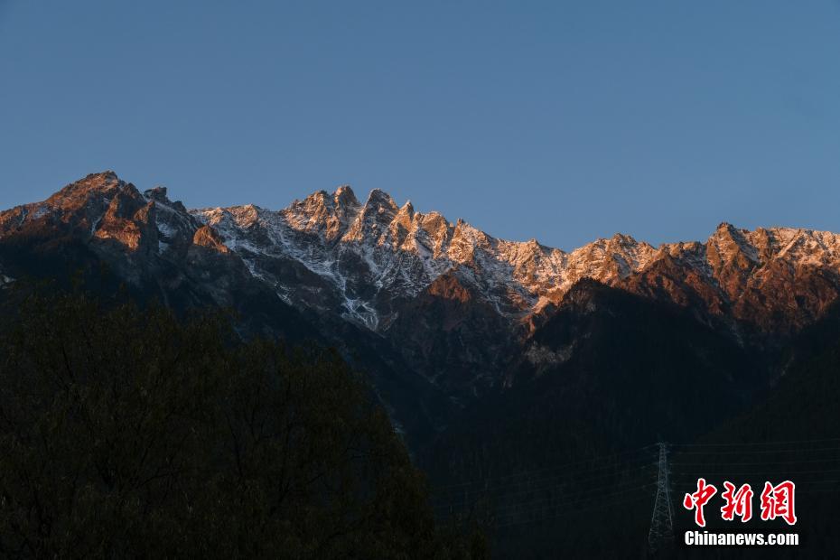 西藏自治區(qū)林芝市波密縣高山綿延、河流縱橫,擁有青藏高原最大的冰川聚集地,縣域境內冰川超過2000座,被譽為“冰川之鄉(xiāng)”。圖為12月14日,金色的夕陽照在波密縣城周邊的雪山頂上。中新社記者 江飛波 攝