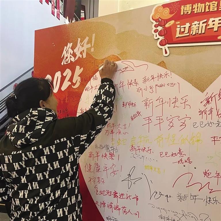 活動(dòng)期間,博物館大廳的新年愿望墻備受歡迎,成為觀眾們的熱門打卡點(diǎn)。人們紛紛在心愿貼上寫下對(duì)新年的美好期許,隨后領(lǐng)取博物館精心準(zhǔn)備的節(jié)日紀(jì)念品。同時(shí),博物館推出的集卡集章活動(dòng)也吸引了眾多參與者。觀眾們通過(guò)參與館內(nèi)各項(xiàng)活動(dòng)收集紀(jì)念章,就有機(jī)會(huì)在年末收獲博物館準(zhǔn)備的神秘大獎(jiǎng),這一活動(dòng)極大地激發(fā)了大家的參與熱情。