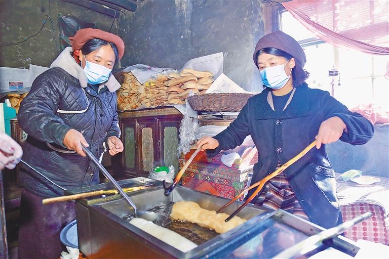 旦索朗一家,在每年藏歷新年前夕,都會開啟一年中最為繁忙的時光——經(jīng)營“卡賽”生意。旦索朗回憶往昔,感慨萬千:“小時候過年,炸‘卡賽’是家家戶戶的頭等大事,整個村子都彌漫著誘人的香氣,那是新年專屬的味道。如今,時代在變遷,人們的生活方式也發(fā)生了改變,越來越多的人選擇購買成品‘卡賽’,這既契合了快節(jié)奏的現(xiàn)代生活,也為我們提供了發(fā)展的機遇。我們經(jīng)營‘卡賽’生意已有6年,這期間,靠著誠信經(jīng)營和對高品質(zhì)的堅守,生意蒸蒸日上,還帶動了6名村民共同增收,大家一起用雙手創(chuàng)造美好生活?!?/p>