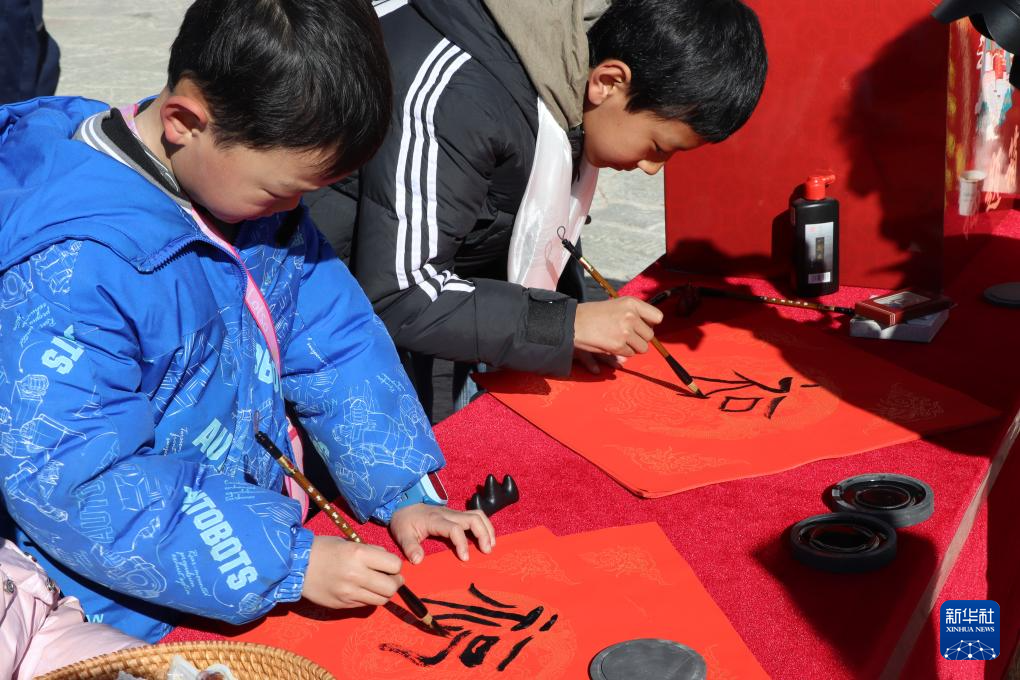 來自河南許昌的9歲男孩楊宸洺拿起毛筆,在紙上認真地寫下一個“?!弊?。他興奮地說:“我要把這個‘福’字,送給在西藏工作的爸爸。希望他在新的一年里,身體健康、工作順利!”說完,他舉起紙張,向媽媽展示自己的作品。