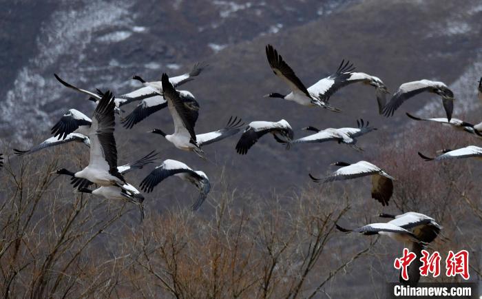 黑頸鶴是全球十五種鶴類中唯一在高原地區(qū)繁殖和越冬的鶴類,被譽為“高原神鳥”,屬中國國家一級保護動物。每年10月中下旬左右,黑頸鶴陸續(xù)飛抵雅魯藏布江中游河谷等地越冬。圖為3月8日,棲息在西藏拉薩林周縣的黑頸鶴。中新社記者 李林 攝