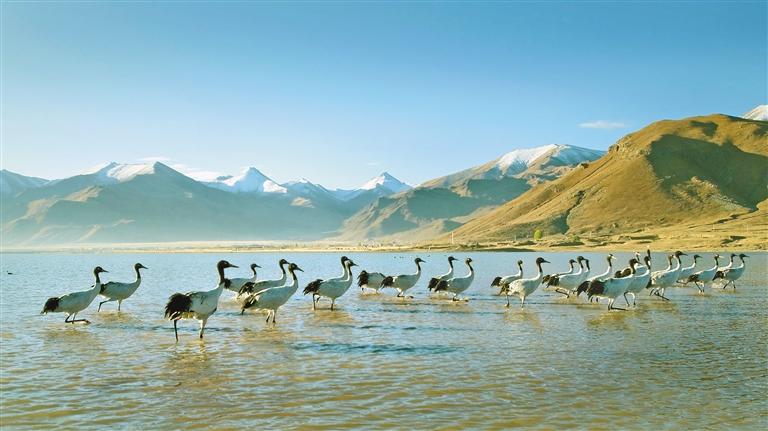 黑頸鶴作為高原上的珍稀鳥類,是拉薩與林周生態(tài)環(huán)境中的重要組成部分。它們優(yōu)美的身姿和悠揚的叫聲,成為這片土地上不可或缺的生態(tài)符號。中國野生動物保護協(xié)會科學(xué)考察委員會副主任委員、北京林業(yè)大學(xué)博士研究生導(dǎo)師李連成說:“拉薩地區(qū)作為黑頸鶴重要的越冬地,得到了當(dāng)?shù)卣块T和社會各界的高度重視,黑頸鶴越冬種群數(shù)量不斷增加,活動區(qū)域不斷擴大。2022年的調(diào)查數(shù)據(jù)顯示,拉薩地區(qū)的黑頸鶴越冬種群數(shù)量約為3375只,其中林周縣有2938只。目前,新一輪針對林周縣黑頸鶴越冬種群數(shù)量的調(diào)查工作正積極推進中。”
