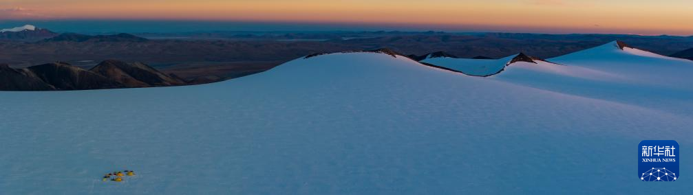這是第二次青藏科考冰芯鉆取團(tuán)隊(duì)在海拔6100米的普若崗日冰原頂部設(shè)立的科考營(yíng)地。普若崗日冰原是世界上高原冰川的典型代表,是中低緯度最大的冰原,也是青藏高原上最厚的冰原(無人機(jī)拼接照片,2024年9月30日攝)。新華社記者 姜帆 攝 ??