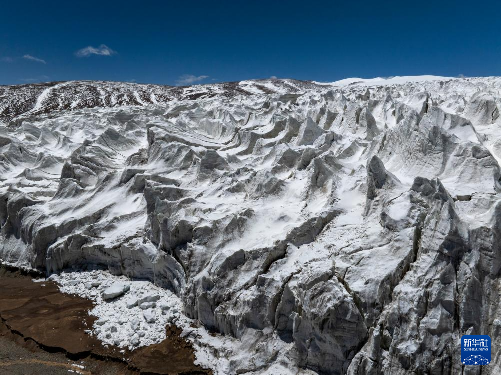 這是日喀則市仲巴縣境內(nèi)的杰瑪央宗冰川(無人機(jī)照片,2024年8月24日攝)。新華社記者 丁增尼達(dá) 攝 ??