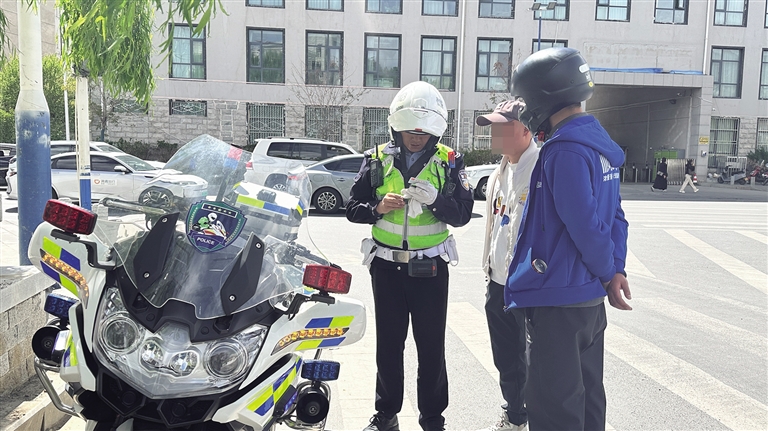 4月22日下午,記者來(lái)到拉薩市江蘇東路與嘎瑪貢桑路交叉路口,此時(shí)車來(lái)車往,道路交通十分繁忙,拉薩市公安局交警支隊(duì)的民警們正在路口疏導(dǎo)交通,并提醒過(guò)往電動(dòng)車駕駛員佩戴好安全頭盔。行動(dòng)中,一輛摩托車迎面而來(lái),由于乘客未佩戴安全頭盔被執(zhí)勤民警攔下,民警耐心地講解了佩戴安全頭盔的重要性以及不佩戴安全頭盔可能帶來(lái)的危害,并依法對(duì)其進(jìn)行了處罰?!耙院篁T摩托車出行,我們一定會(huì)佩戴好安全頭盔,遵守交通規(guī)則,確保自身安全。”摩托車駕駛員李某說(shuō)。