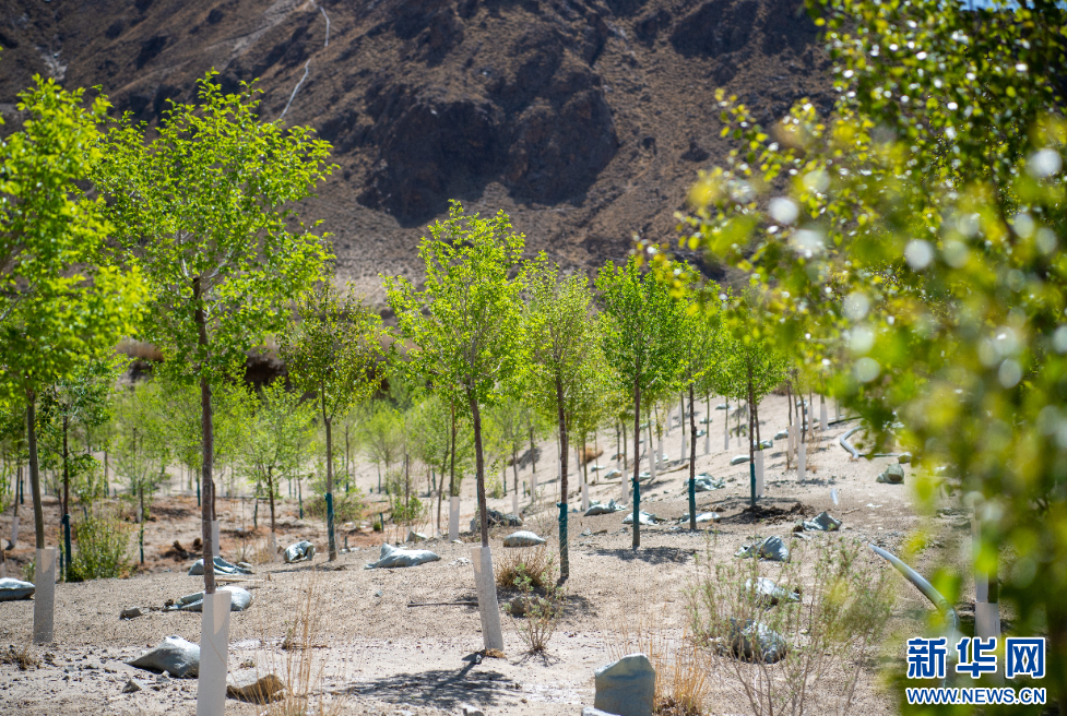 圖為拉薩南北山綠化(貢嘎段)2021年種植的樹木。(4月24日攝)新華網(wǎng) 旦增努布 攝