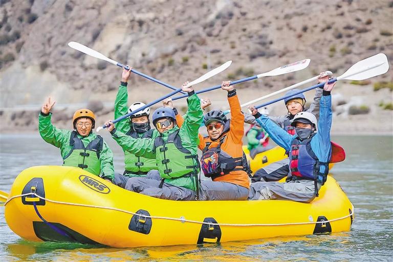 “五一”假期,墨竹工卡唐加鄉(xiāng)騎漂行活動舉行,近30位戶外運動愛好者體驗了13公里騎行、4公里徒步、10公里漂流等項目。圖為戶外運動愛好者體驗10公里漂流項目。記者 鹿麗娟 攝
