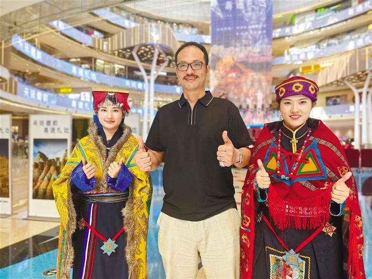 圖為觀眾與身著札達傳統(tǒng)服飾的工作人員合影留念。 (札達縣文化和旅游局供圖)