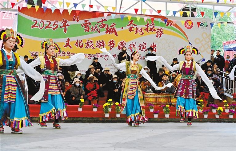 近日,“雪域古城·圣地拉薩”文化旅游節(jié)非遺主題活動在拉薩宗角祿康公園內(nèi)開展,現(xiàn)場人潮涌動。非遺藏戲演員身著華服,以高亢唱腔演繹《朗薩雯蚌》選段,觀眾圍坐沉浸于雪域藝術魅力。非遺展銷區(qū)陳列著木雕、牛皮制品等傳統(tǒng)手工藝品?;顒尤嬲宫F(xiàn)了非遺保護傳承與利用的新進展和新成效。記者 唐斌 攝