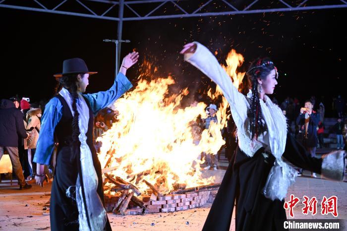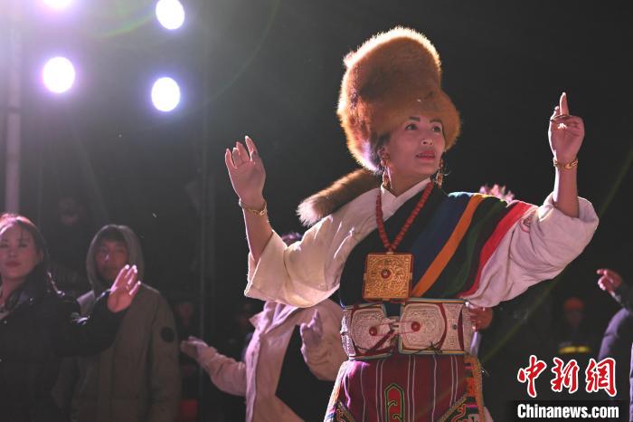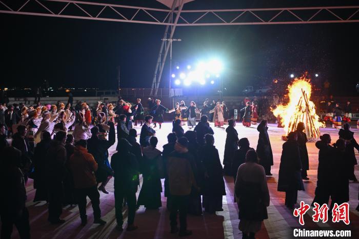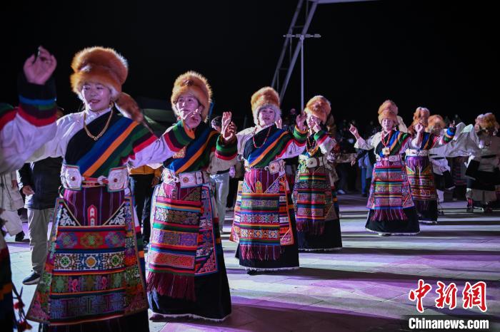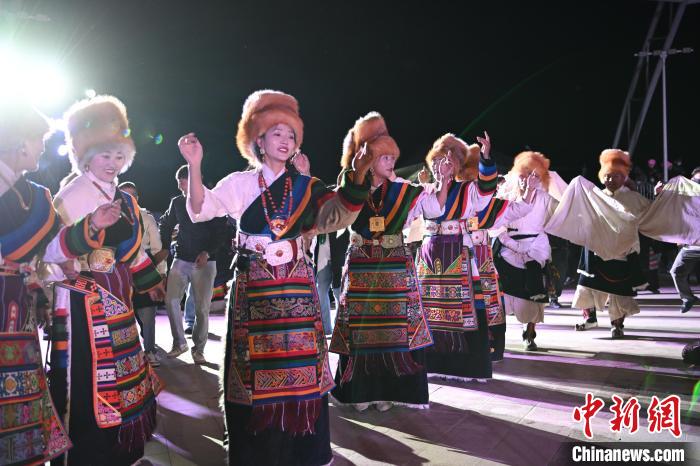 圖為“情定當(dāng)雄”篝火鍋莊晚會(huì)文藝演出現(xiàn)場(chǎng)。中新社記者 貢嘎來(lái)松 攝