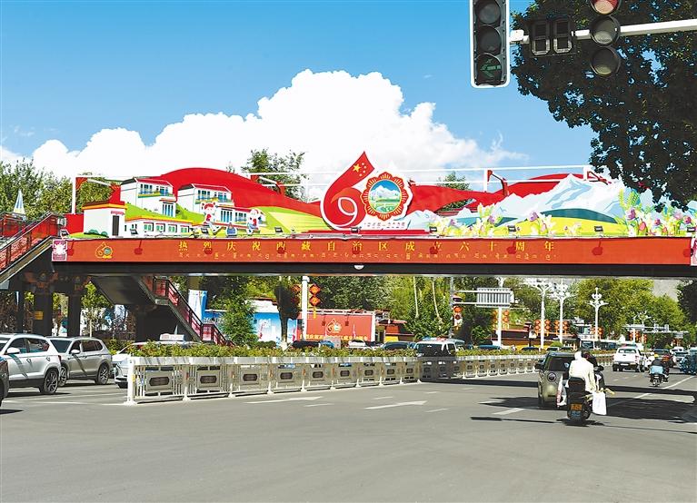 裝扮一新的人行天橋。 記者 旦增蘭澤 攝