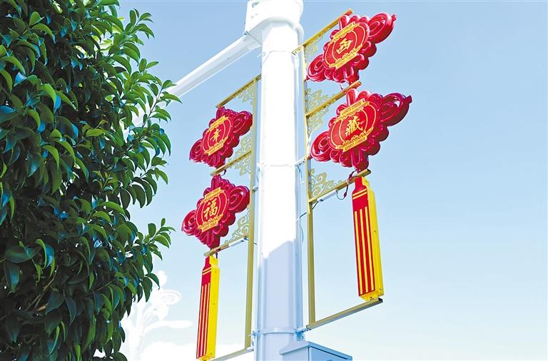 拉薩街頭路燈燈桿上的中國結(jié)。 記者 王敏 攝