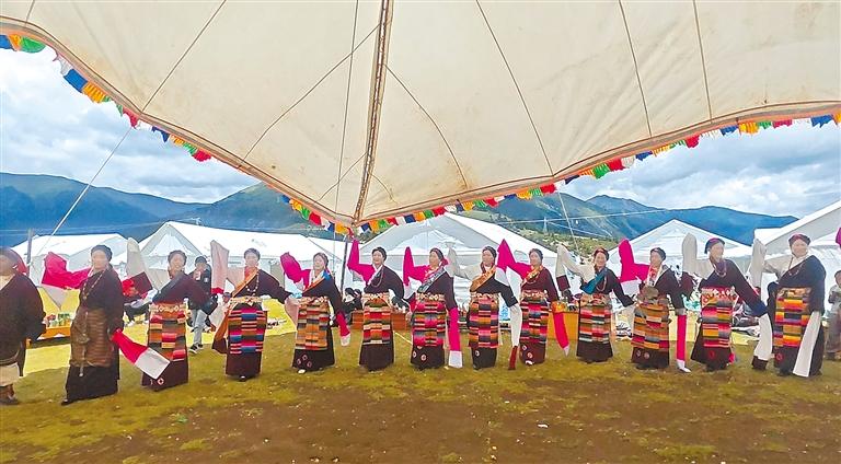 “我們村的‘耍壩子’活動是當?shù)貍鹘y(tǒng)民俗活動,不僅是群眾放松身心、凝聚社群力量的重要方式,更是展示傳統(tǒng)文化、推動鄉(xiāng)村振興的鮮活載體?!蔽魉韶暣羼v村專干澤仁珍瑪告訴記者,活動期間,除安排最常見的歌舞節(jié)目外,還穿插有跑步、翻桶接力賽等競技項目,由于群眾參與度高,現(xiàn)場十分熱鬧。
