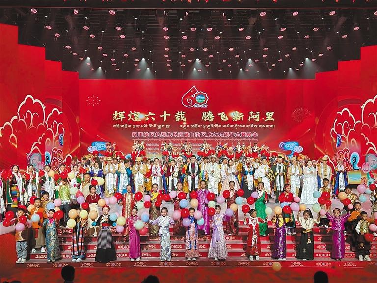 “輝煌六十載·騰飛新阿里”——阿里地區(qū)熱烈慶祝西藏自治區(qū)成立60周年主題晚會(huì),日前在阿里地區(qū)影劇院舉行。記者 永青 洛桑旦增 攝