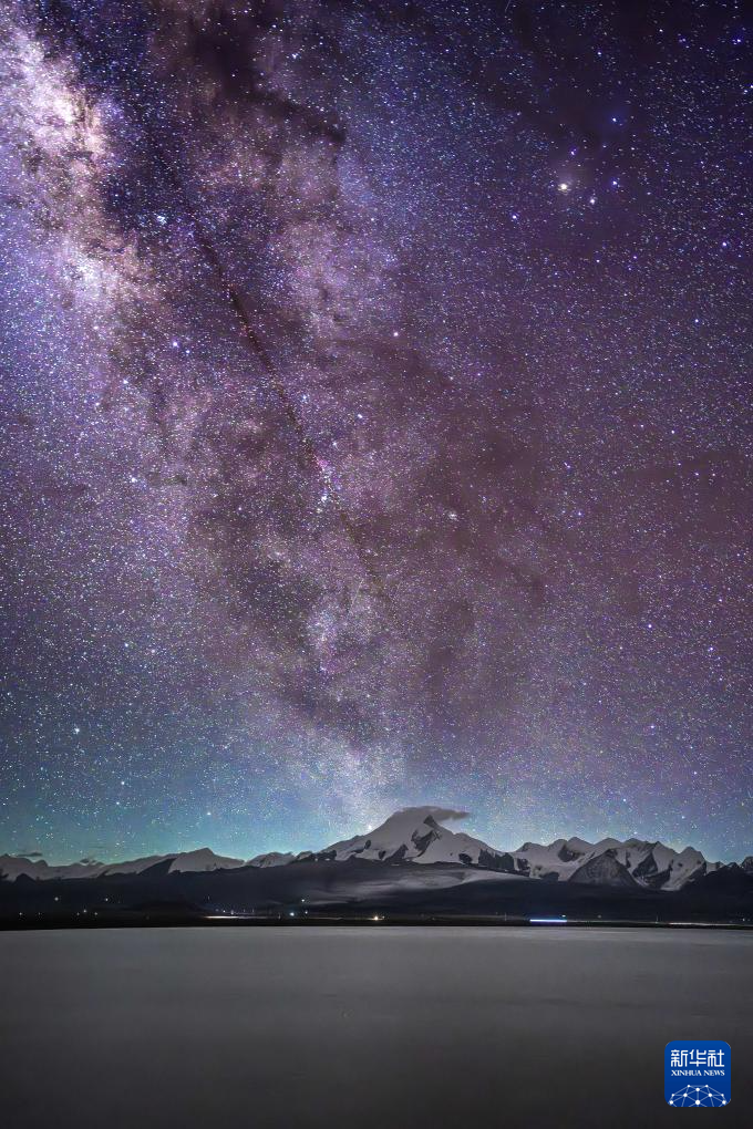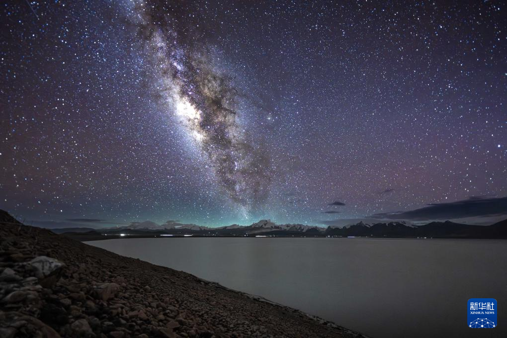 這是在佩枯錯(cuò)拍攝的銀河(8月14日攝)。新華社發(fā)(馬理朝攝)