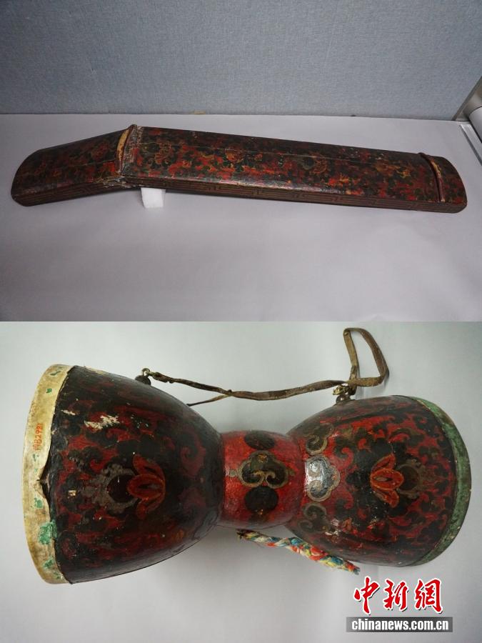 唐朝文成公主帶到吐蕃的琴與長鼓。 北京民族文化宮供圖