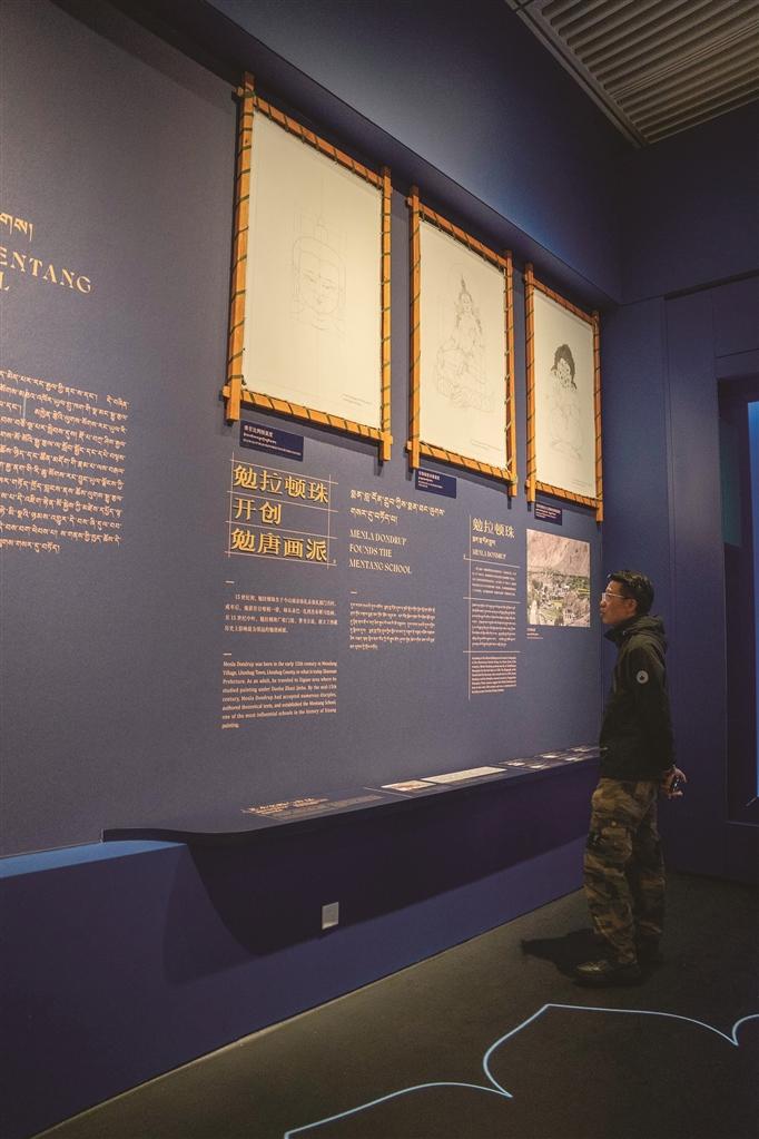 西藏博物館研究館員吉如·巴桑羅布表示,唐卡作為承載西藏歷史、文化與民族記憶的“百科全書”,是中華文化多元一體、交融共生的生動實證。勉唐畫派作為西藏繪畫藝術的重要代表,既銘刻中華民族交往交流交融的歷史印記,亦見證各民族文化藝術互鑒共榮的發(fā)展歷程。此次展覽作為“西藏唐卡藝術主題展”系列開篇,以勉唐畫派為切入點,薈萃全區(qū)多家文保機構與研究單位的唐卡珍品,并依托現(xiàn)代展陳技術、沉浸式體驗及數(shù)字化互動等手段,令靜默文物煥發(fā)時代活力,生動詮釋各民族多元交融、和美共生的宏大敘事,為觀眾開啟一場深入西藏藝術精髓的審美之旅。圖/記者 桑旦歐珠