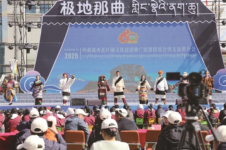 舞蹈《古韻》《非遺服飾秀》、歌曲《年輕的城市》《請到那曲走一走》等精彩節(jié)目輪番上演,一次次將聯(lián)席會的氣氛推向高潮。聯(lián)席會上,那曲、昌都、阿里三地文旅局代表共同簽署了《藏西北區(qū)域文旅推廣聯(lián)盟合作框架協(xié)議》,明確將在共塑品牌形象與聯(lián)合宣傳推廣、共推精品線路與產(chǎn)品創(chuàng)新、共建客源市場與互送機制、共享信息資源與交流學(xué)習(xí)等多個領(lǐng)域深化合作,這標(biāo)志著藏西北旅游聯(lián)盟合作正式開啟了嶄新的篇章。