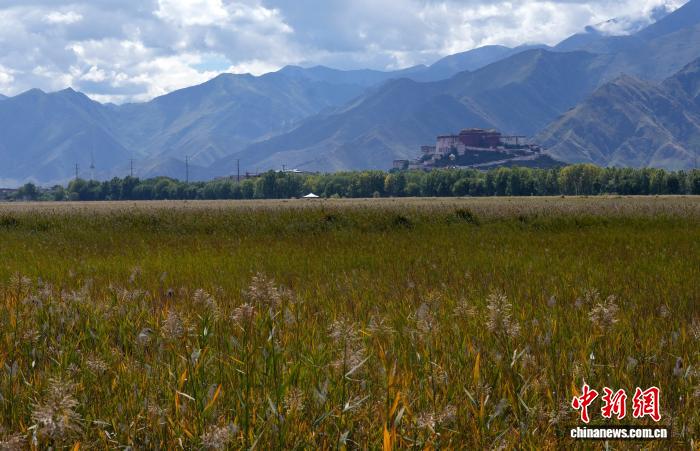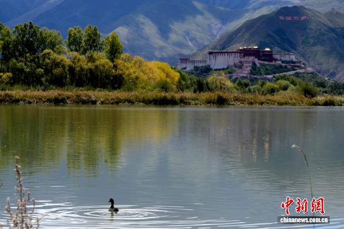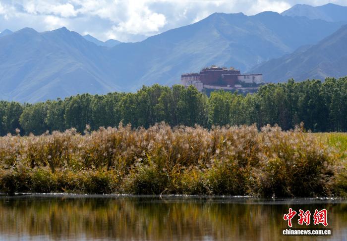 9月4日,初秋時節(jié)的西藏拉薩市拉魯濕地國家級自然保護區(qū)秋意漸濃、景色如畫。藍天白云下,草木黃綠、水鳥嬉戲,與遠處的城市建筑共同構成一幅美麗的生態(tài)畫卷。中新社記者 李林 攝