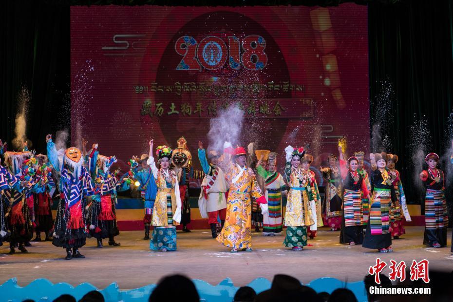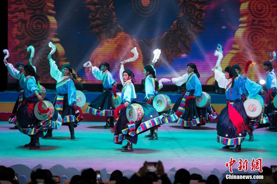 2月10日,隨著2018年春節(jié)和藏歷新年的日益臨近,西藏拉薩的節(jié)日氣氛越來越濃。當(dāng)晚一場(chǎng)傳統(tǒng)歌舞晚會(huì),提前為拉薩民眾送去新春的祝福。晚會(huì)以傳統(tǒng)藏戲、歌舞、小品等表演形式,把藏民族古老的藏戲、卓舞、鍋莊等非物質(zhì)文化遺產(chǎn)搬到了新年舞臺(tái)。圖為中國(guó)國(guó)家級(jí)非物質(zhì)文化遺產(chǎn)《卓舞》表演。中新社記者 何蓬磊 攝