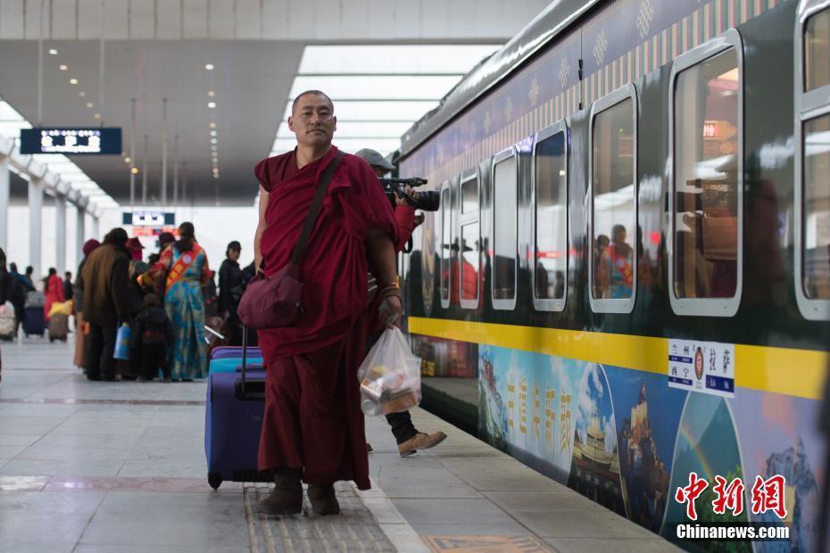 2月1日,為期40天的2018年春運(yùn)正式開啟。首日,拉薩火車站共發(fā)送旅客5648人次,其中乘坐到成都、廣州等方向的旅客人數(shù)最多。初步統(tǒng)計(jì),今年春運(yùn)拉薩站將輸送旅客約16.5萬(wàn)人次,日均發(fā)客量約4200人次。圖片來(lái)源:中新社 何蓬磊 攝