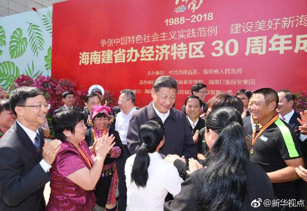 13日上午,習(xí)近平總書記在??谑袇⒂^了海南建省辦經(jīng)濟(jì)特區(qū)30周年成就展,對30年來特別是黨的十八大以來海南經(jīng)濟(jì)社會發(fā)展成就給予肯定。他指出,貫徹黨中央精神不是喊口號,要結(jié)合當(dāng)?shù)貙嶋H、經(jīng)過深入調(diào)研形成符合黨中央精神的一系列具體舉措,并在實施中早見成效、大見成效。
