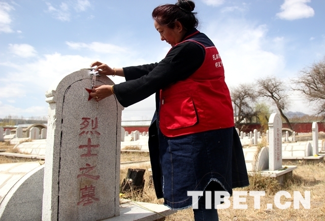 在肅穆寧靜的拉薩烈士陵園內也有很多不知不知已在此長眠了多少年的無名烈士。讓人欣慰的是,每年清明時節(jié)都有人來為他們進行祭掃。扎西新村社區(qū)副主任張艷說:“扎西新村社區(qū)的志愿者們每年都會自發(fā)前來為陵園內的無名烈士們祭掃,讓無名英雄們不孤單?!保ㄖ袊鞑鼐W 圖、文/賈華加)