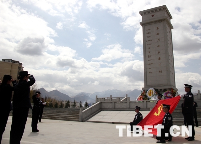 清明節(jié)當天,與徐秋林一樣前來烈士陵園祭掃、緬懷的人還有很多。拉薩市曲水縣公安局副局長次旦桑珠和他的同事們懷著無比崇敬的心情向革命烈士紀念碑敬獻花圈,重溫入黨誓詞。