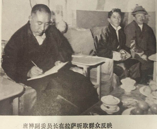 圖為十世班禪在拉薩聽取群眾反映。 圖片翻拍自《西藏文史資料選輯》