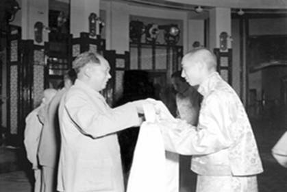 1951年4月,中央人民政府全權(quán)代表同西藏地方政府全權(quán)代表在北京就和平解放西藏事宜進(jìn)行談判。5月23日,中央人民政府同西藏地方政府簽訂了《關(guān)于和平解放西藏辦法的協(xié)議》(簡稱“十七條協(xié)議”)。24日,為慶祝“十七條協(xié)議”的簽訂,毛澤東主席舉行盛大宴會,十世班禪及班禪堪布會議廳主要負(fù)責(zé)官員參加了宴會。