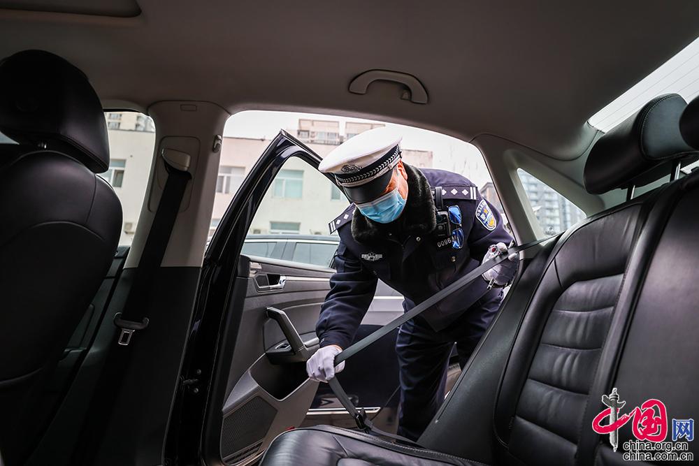 專業(yè)檢查人員逐一對車內(nèi)安全帶進(jìn)行檢查并記錄。中國網(wǎng)記者 鄭亮攝
