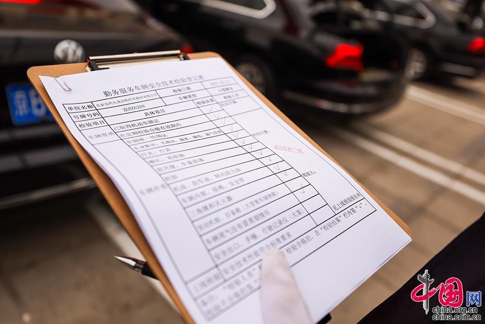 專業(yè)檢查人員逐一對車輛進(jìn)行檢查,大燈、雨刷、遠(yuǎn)光燈、剎車每項都要細(xì)心檢測并做記錄。中國網(wǎng)記者 鄭亮攝
