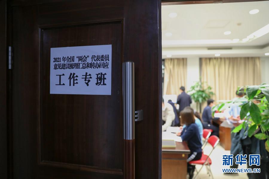 3月5日,2021年全國兩會代表委員意見建議梳理匯總和轉(zhuǎn)辦回應(yīng)工作專班的工作人員在忙碌。新華社記者 李木子 攝