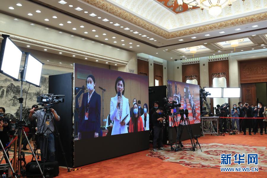 3月4日晚,十三屆全國人大四次會議在北京人民大會堂新聞發(fā)布廳舉行新聞發(fā)布會,大會發(fā)言人張業(yè)遂就會議議程和人大有關(guān)工作回答中外記者提問。這是記者在分會場通過網(wǎng)絡(luò)視頻方式采訪。新華社記者 金良快 攝