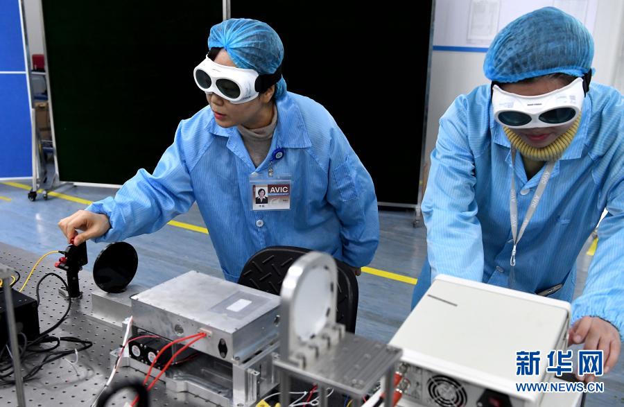 2月25日,在中國航空工業(yè)集團(tuán)公司洛陽電光設(shè)備研究所,航空工業(yè)集團(tuán)光電專業(yè)特級(jí)技術(shù)專家羊毅(左)與團(tuán)隊(duì)成員在實(shí)驗(yàn)室做實(shí)驗(yàn)。新華社記者 李安 攝