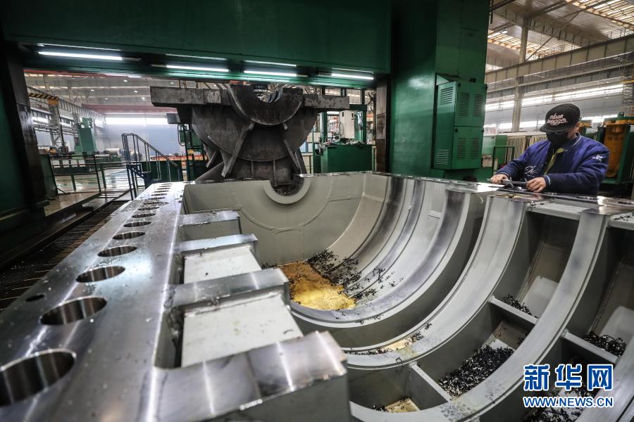 沈陽鼓風(fēng)機(jī)集團(tuán)股份有限公司的工人在車間進(jìn)行生產(chǎn)工作(2020年2月10日攝)。新華社記者 潘昱龍 攝